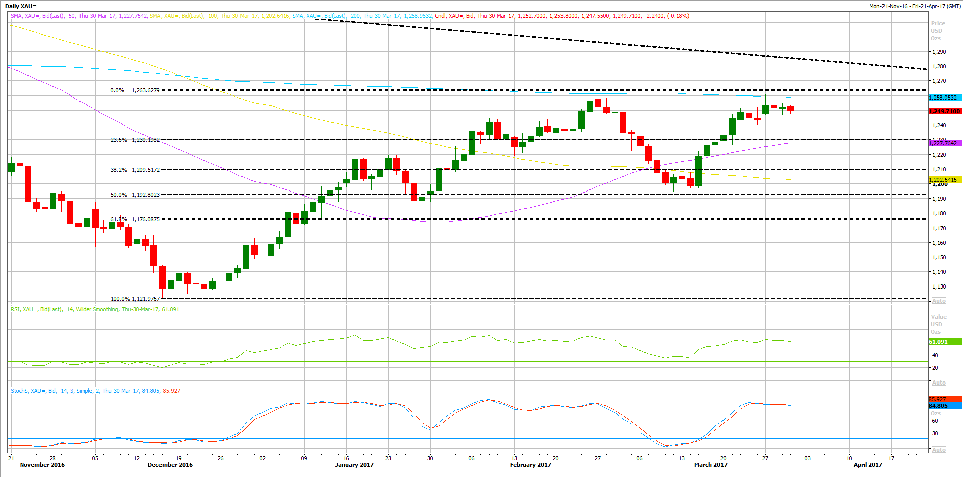The downside retracement is likely to remain limited above certain levels, beginning with the first immediate support which stands at $1243 followed by 1227, which represents its 50 DAY MA on the daily chart.
