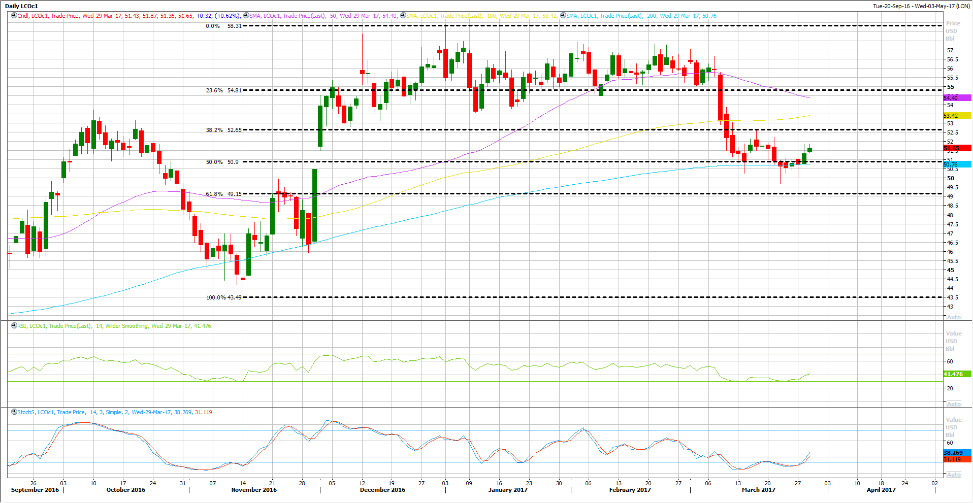 From a technical analysis point of view, Brent Crude is also supported by its 200 DAY MA, which held strongly since November of last year, with no clear breakthrough that support as of yet.