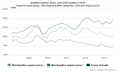 New Zealand terms of trade rises 5.7% in Q4, 2016