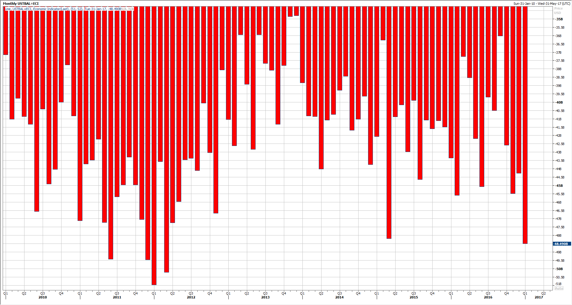 The US Trade Balance deficit widened more than expected, rising to the highest level in 5 years, specifically since March of 2012 on soaring imports.