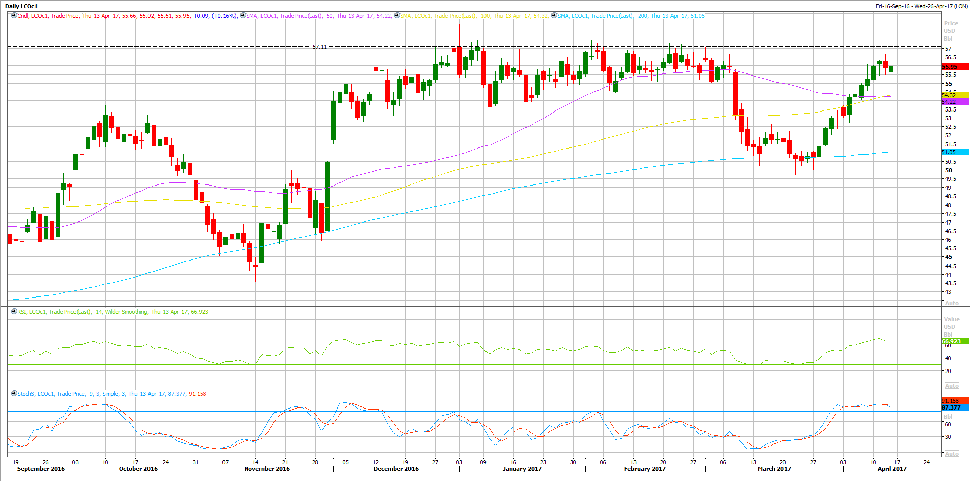 Both crudes are few dollars away from their yearly highs, which remains a key resistance for any rally ahead. Brent Crude key resistance remains at 57.11 while WTI Resistance stands at 54.50.