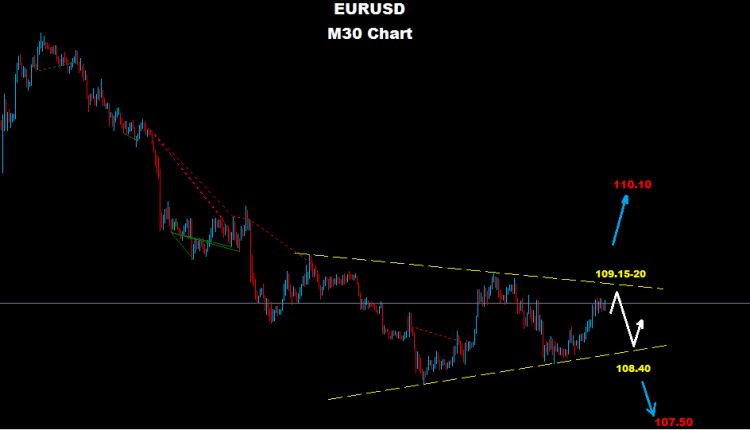 as we see over the chart, USDJPY managed to establish a triangle formation where resistance at 109.15 and support at 108.40