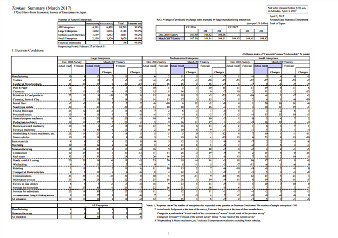 Below, you can see a sample of the Tankan report published by the Bank of Japan.