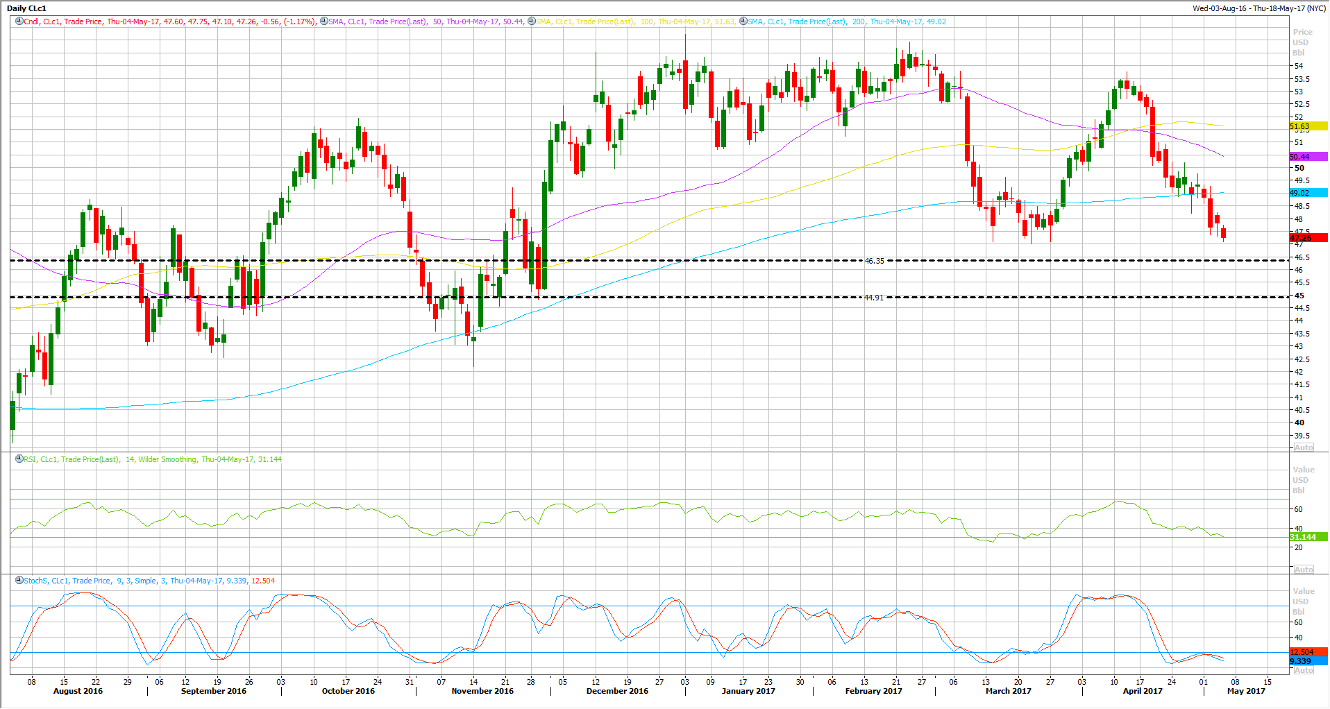 On the upside view, any rally is likely to be limited below the 200 DAY MA which stands at $49.02 maybe $50 key resistance area.