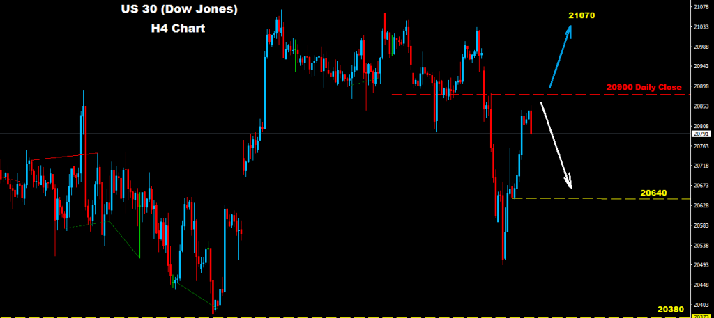 market now facing resistance at 20900 which may set trading zone between this level and support 20640