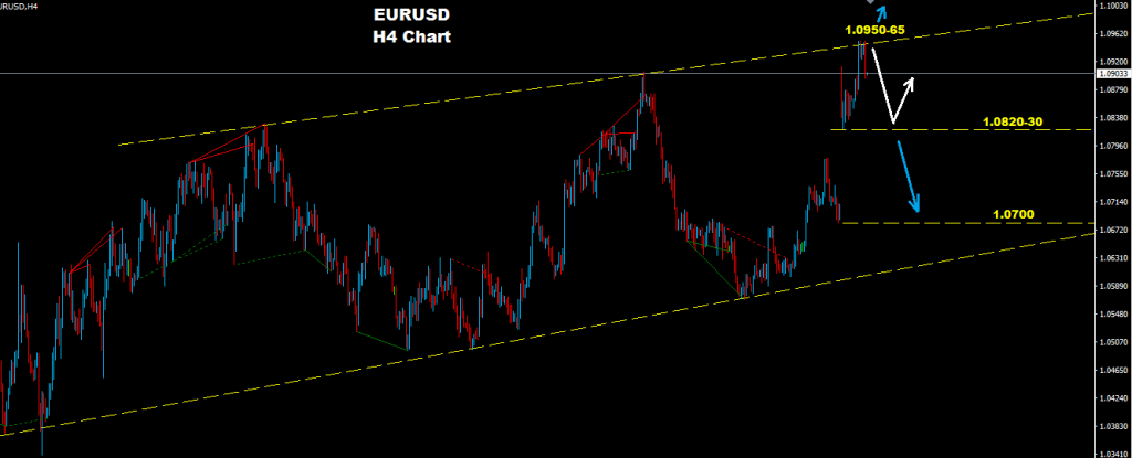 মার্কেট ১,০৮২০ এবং ১.০৯৫০ এর ভেতরে ট্রেড হোল্ড করে আছে যেখানে মার্কেট এখন পর্যন্ত ১.০৯৬০ রেসিটেন্সে ফেস করে আছে।