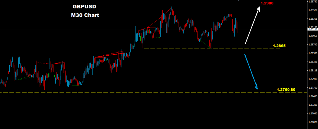 intraday levels showing support at 1.2865 where as long as market holding above this support the chance for another advance toward 1.2980 will sustain