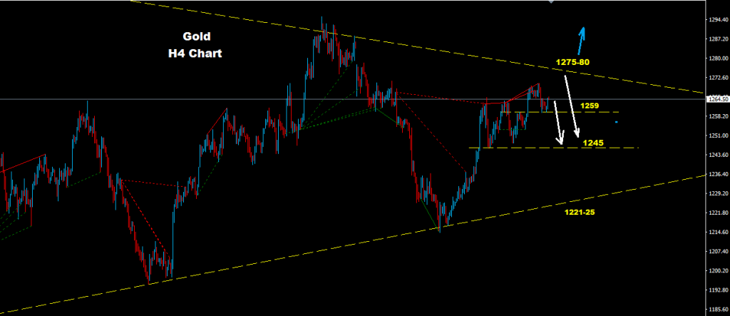 Gold managed yesterday to hit below 1262 in signs of more drop may hit the market