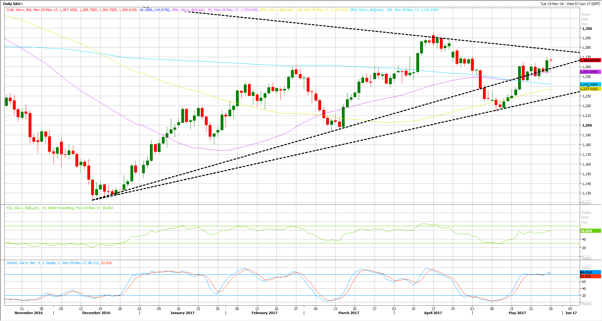 On the downside view, any downside retracement is likely to be limited above the previous bottom around $1210. But before that, keep an eye on the entire moving averages, including the 50 DAY MA which stands at 1255, 200 DAY MA at 1241 and finally 100 DAY MA which stands at 1237.