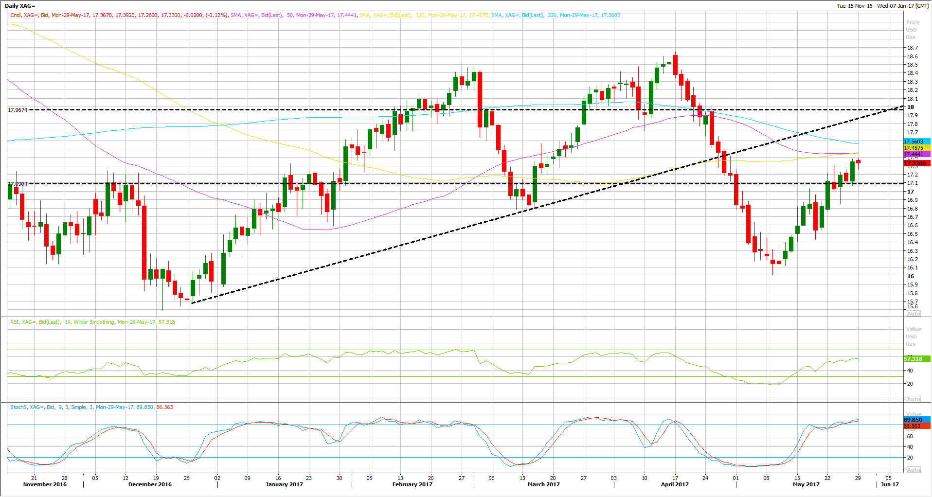 Silver managed to rebound above some key resistance levels last week, including the $17 barrier, leading to another push higher all the way to 17.30’s.