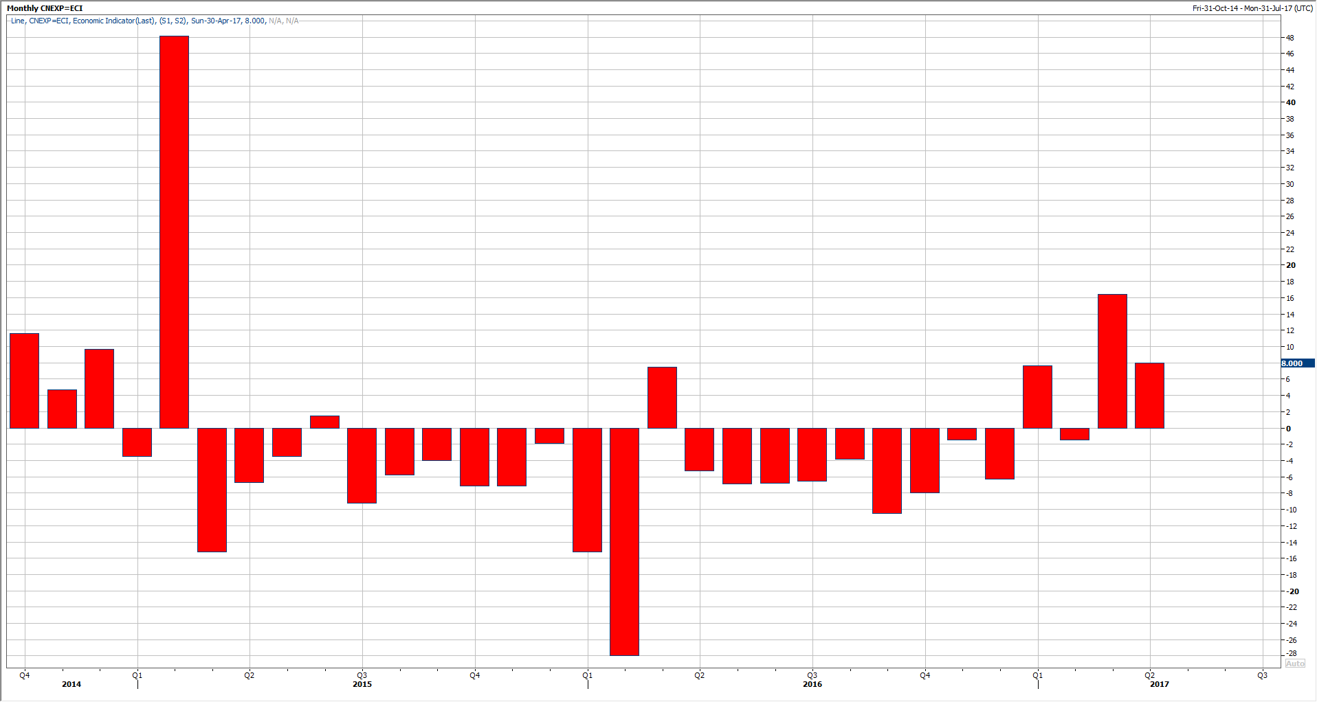 The YoY Exports increased by 8.0% In April compared to 16.4% in March, despite the fact that the estimates were to rise by 10.4%.