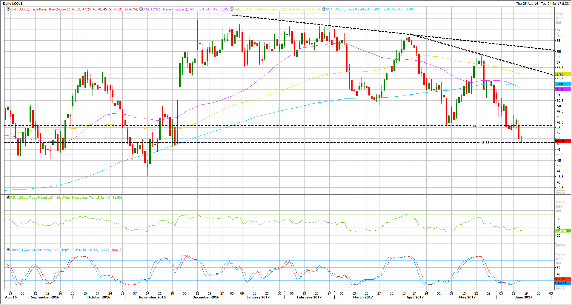If you look at WTI chart, the chart is very clear, a clear breakdown below 45.50 and 45.0 support area, leading to a sharp decline all the way to today’s lows around 44.40 so far.