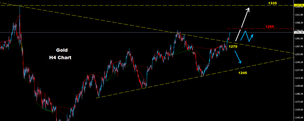 market now facing resistance at 1295 while support at 1270 which may hold trading zone
