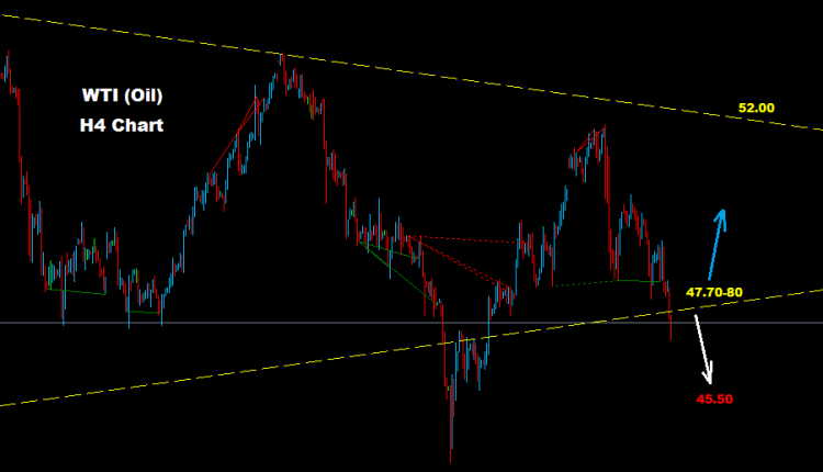 Crude Oil managed to hit below support 47.00 which may provide farther drop later if market managed to hold trades below resistance 47.70-80