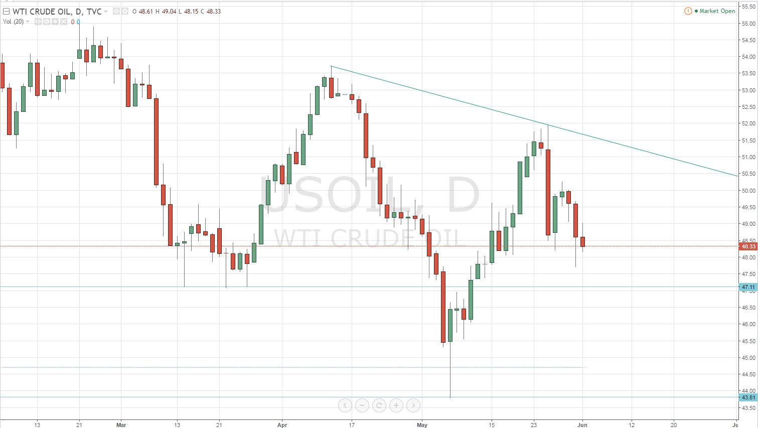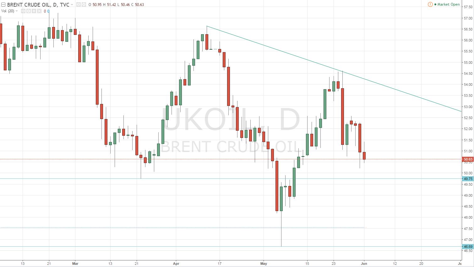 In Brent Crude, traders need to keep an eye on $50 mark, as it represents a solid psychological support, as a break through that support would clear the way for deeper declines.