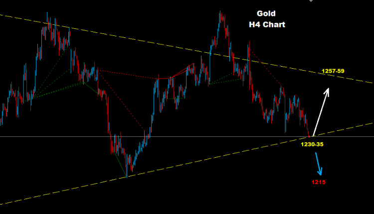 Gold finally managed to test 1230-35 support zone as we adviced last week
