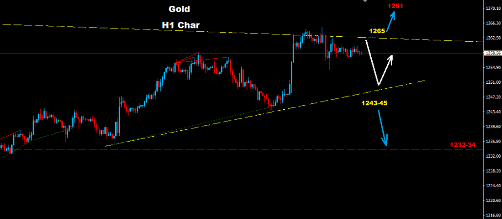 Gold seems trying to hold trading zone between support 1243-45 and resistance 1265