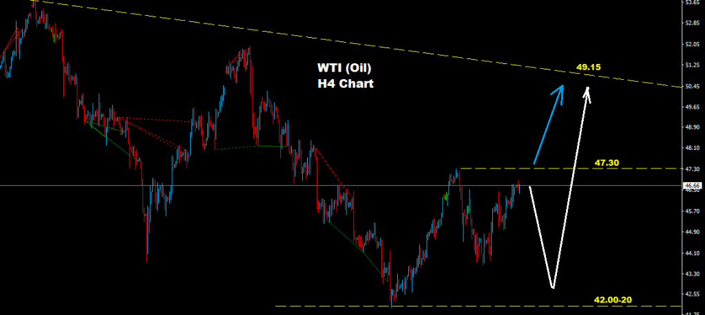 Crude oil still facing Intraday resistance level at 47.30 which if managed to hold trades below another drop wave toward 42.00-50 zone may hit the market before an advance wave toward 49.15 may took place