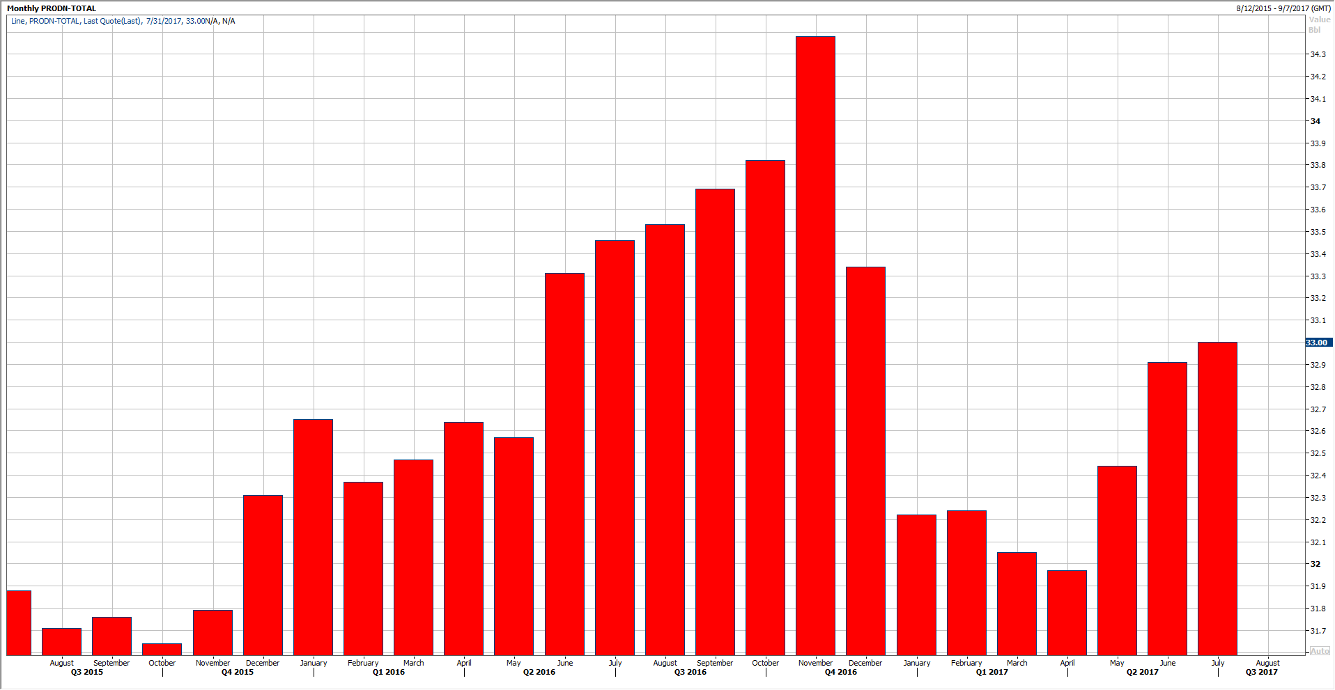 Yesterday, there were some reports that the production is set to increase by another 100K barrels, which means that it will surpass the 33M mark.