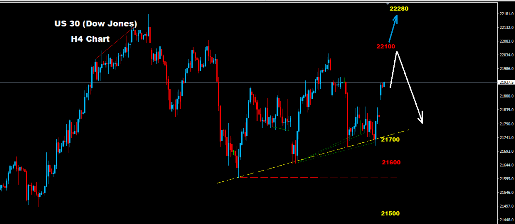 ডাউ ২১৭০০ এর উপরে চলে গিয়েছে যা কিনা আরেকটি এডভান্স ওয়েভ করে ২২১০০ এর দিকে টার্গেট করতে পারে।