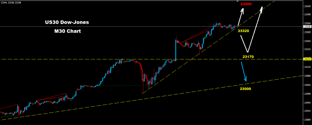 Second target still valid toward 23500 where market still facing support at 23320 and 23170 where as long as market holding above one of those supports more advance toward 23500 and 23700 may hit the market