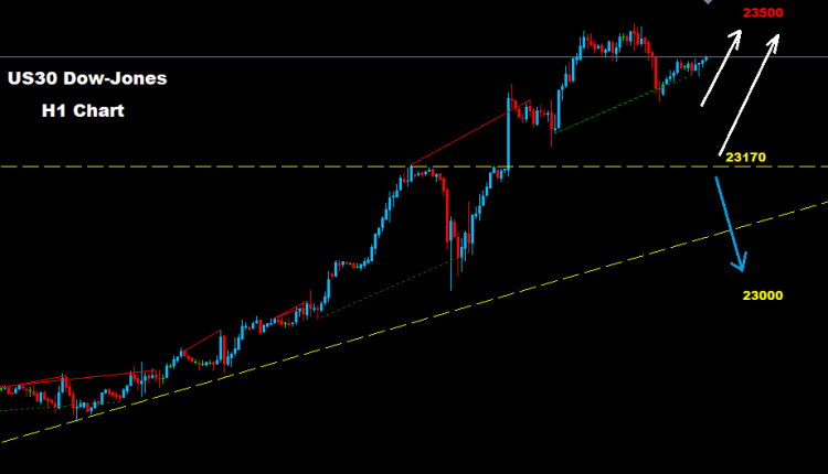 Dow still holding short-Run uptrend wave where as long as market sustain trades above 23170 the uptrend march may sustain toward 23500 and 23700