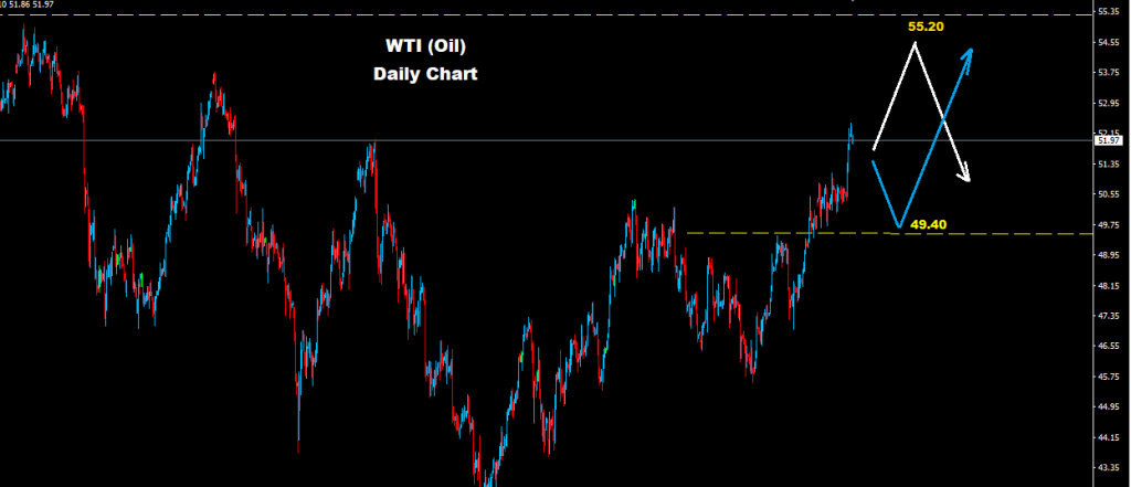 ক্রুড তেল এডভান্স হয়ে ২য় টার্গেট ৫১.৯০ এর দিকে অবস্থান করে আছে।