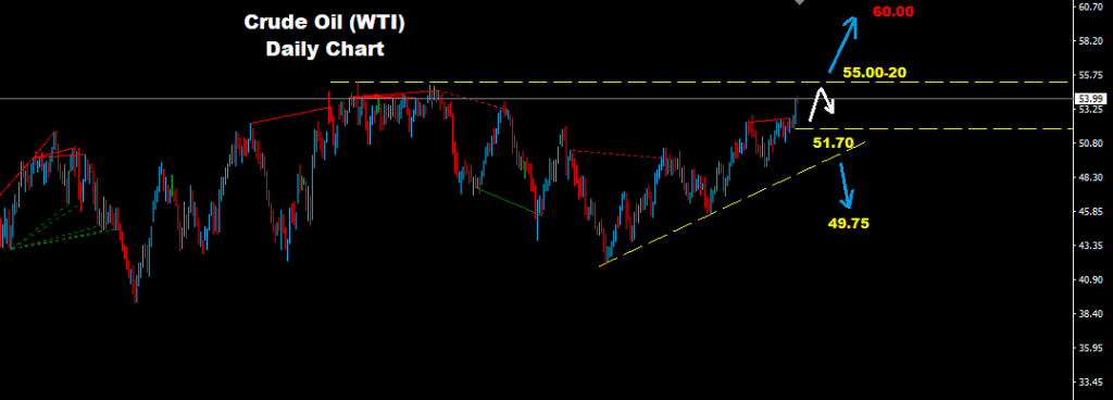 Market managed to break above this level where more advance is expected where market will face another resistance at 55.00-20 zone