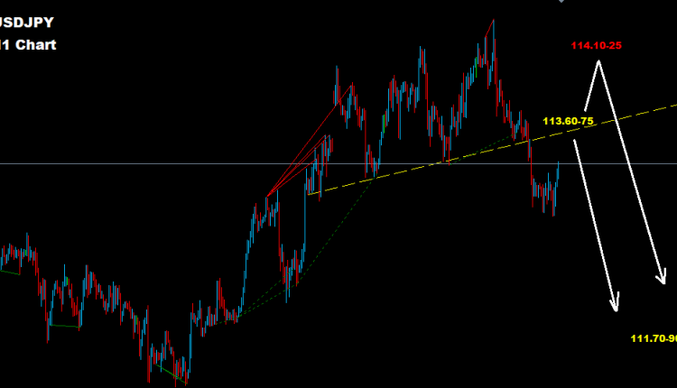 Intraday facing resistance at 113.60-75 zone which may drive the market lower toward target 111.70-90