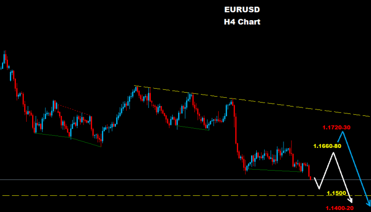 Market now facing support at 1.1500-20 while resistance at 1.1660-80 where market may head fgor some trading zone heare for some rebound correction before downtrend wave back to controll market toward third target 1.1400-20 zone