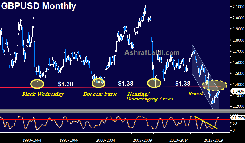 The sterling’s selloffs of 2000-2001 and 2007-2008 were triggered by global economic catalysts as well as UK-specific events, yet, are also highlighted by the $1.38 support.