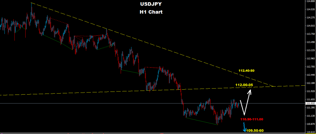 One of the possible scenario for USDJPY is to maintain trading zone between 111.00 and 112.00 for the Intraday levels