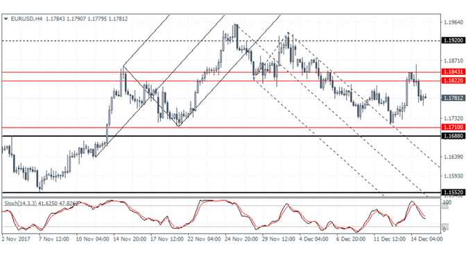 EURUSD (1.1781): The EURUSD posted declines yesterday as the ECB left the monetary policy unchanged. The long term inflation forecasts showed that consumer prices in the Eurozone could remain below the ECB’s inflation target rate. This hit the sentiment in the euro which extended losses. However, as price action remains supported above the 1.1710 level of support, the bias remains to the upside. On the intraday basis, the reversal near the resistance level of 1.1822 signals a continuation to the downside. The intraday support at 1.1710 could be tested in the near term as the currency pair can be seen maintaining a sideways range within the levels mentioned.