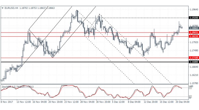 In the U.S. trading session, the dollar was muted to the news of the Congress passing the tax reforms bill. On the economic front, the NAR reported that existing home sales rose 5.6% on the month in November.