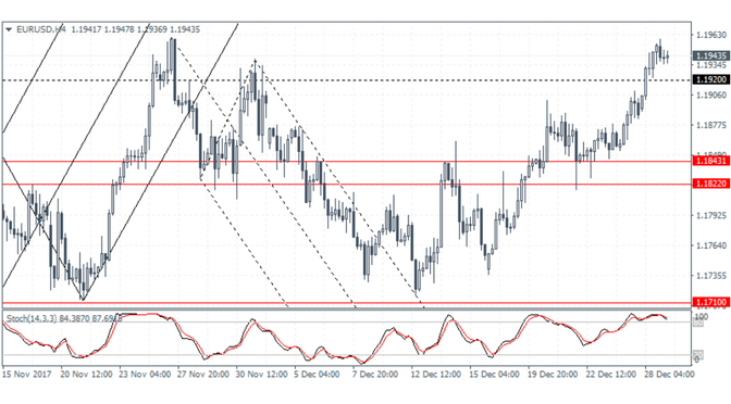 EURUSD (1.1943): The EURUSD rallied to briefly test the 1.1954 handle before slightly retreating back. The currency pair managed to close at a 3-month high at 1.1941. The gains came amid a weaker U.S. dollar. On the 4-hour session, the currency pair was seen closing above the 1.1920 handle which could now come in as support. Establishing support at this previous resistance level is likely to signal further gains in the near term. However, this comes at a risk that the currency pair might close below the level in which case the sideways momentum could still be maintained. The next lower support comes in at 1.1843 – 1.1822 level.