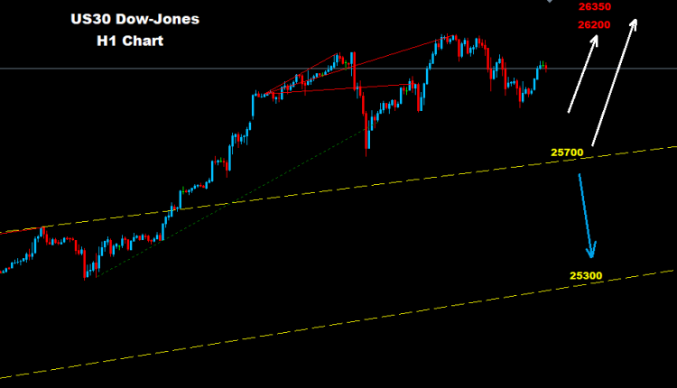 Intraday Levels are now protected by support levels at 25850 and 25700 where, as long as the market holds its trades above the uptrend wave, will sustain itself towards the 26200 and 26350 targets.