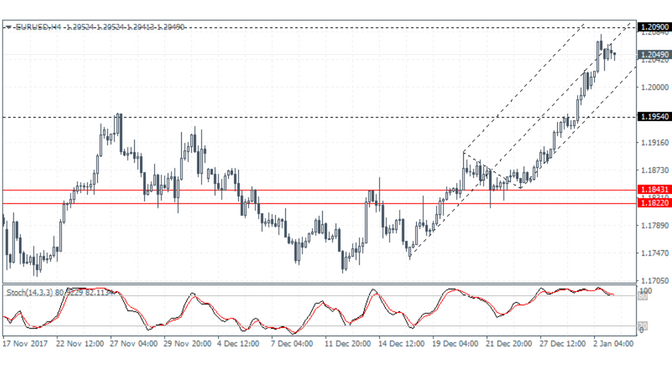 EURUSD (1.2049): The EURUSD continued to edge higher as price advanced to a fresh 4-month high at 1.2090 before easing back. The euro is now within reach of 1.2090 resistance which could be tested in the short term. Further gains can be seen coming on a close above this level. To the downside, the declines could be limited to 1.1954 level where support is most likely to be established. This could also become the new range for EURUSD in the short term. Watch for a potential exhaustion to the upside momentum in the short term for a possible correction. Unless we see a strong breakout that will justify further gains.