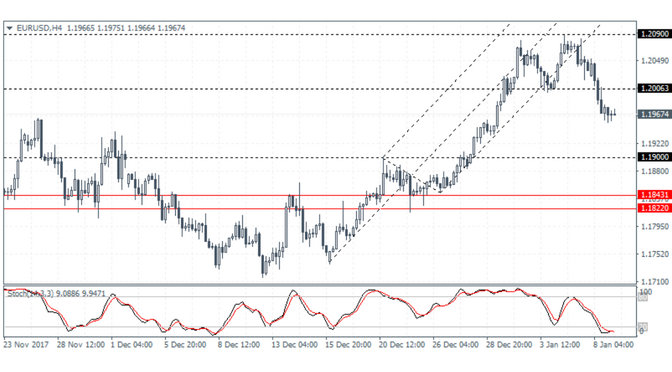 EURUSD (1.1967): The EURUSD posted sharp declines yesterday as price action was seen testing the support level at 1.1950 level, touching a 5-day low. The declines came on a stronger U.S. dollar and amid concerns that the strong appreciation in the common currency could spur ECB officials to talk down the currency ahead of this month’s monetary policy meeting. Technically, EURUSD could be seen posting a rebound off 1.1950 however, further declines cannot be ruled out to 1.1900. A retest of support at 1.1900 could potentially complete the correction. In the near term, any rebound will be limited to the 1.2000 handle which previously served as minor support.
