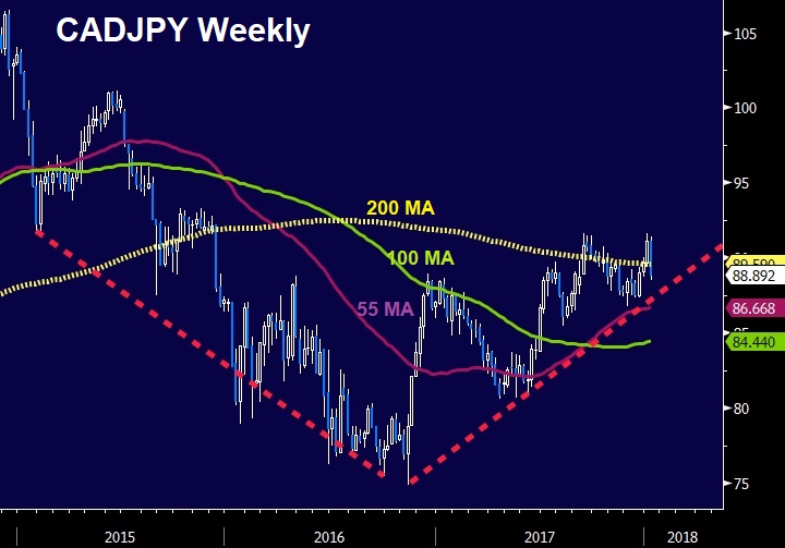 If trump decides to push forward on his NAFTA and China trade tensions, then optimism about a synchronised 2018 could quickly reverse. The result would dampen the rising tide in bond yields and further boost the Japanese yen. As for NAFTA, the process of withdrawing will need to pass through a messy series of votes in Congress. That means more noise and volatility surrounding the Canadian dollar, clouding the nation’s accelerating fundamentals and the Bank of Canada’s path to policy normalisation.
