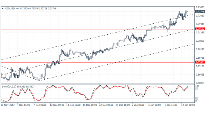 NZDUSD (0.7274): The NZDUSD maintained strong gains last week as price closed at a four month high of 0.7259. However, the doji close on Friday could indicate some profit taking resulting in a short term correction. With the daily trend line being breached, NZDUSD could revisit the breakout level around 0.7160. Establishing support at this level could validate further upside gains in the currency pair. At the same time, if NZDUSD fails to find support, we could expect to see a deeper correction that could push price down to the 0.6944 region.