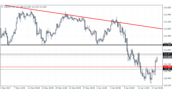USDJPY (111.45): USDJPY posted a recovery as price action turned bullish yesterday. Closing above the 111.00 level of support, further gains could be expected if USDJPY manages to find support near 111.00 on a dip. We expect that the currency pair will target the next upside resistance at 111.61 region. The main test of resistance will be seen at 112.00 which previously served as support and was eventually breached. A break out above 112.00 could signal further gains in the medium term. However, for the moment, USDJPY could remain below the 112.00 resistance level upon successfully retesting this level.