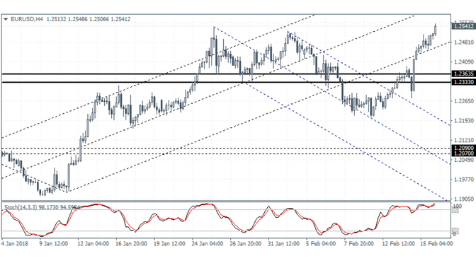 EURUSD (1.2541): The EURUSD maintained the gains yesterday as price rallied to a fresh 3 year higher earlier today. The gains in the euro came as the U.S. dollar failed to hold on the gains giving a lift to the common currency. With the strong gains, any downside correction could be limited to the 1.2365 level which previously served as resistance. A retest of support at this level could signal a potential rebound with the upside bias intact.