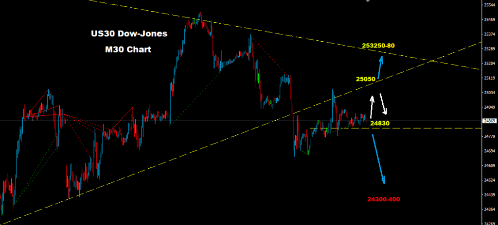 As we advised yesterday, when Dow managed to break above 24900 market managed to add more advance to test 25050 which pushed market again toward downtrend wave