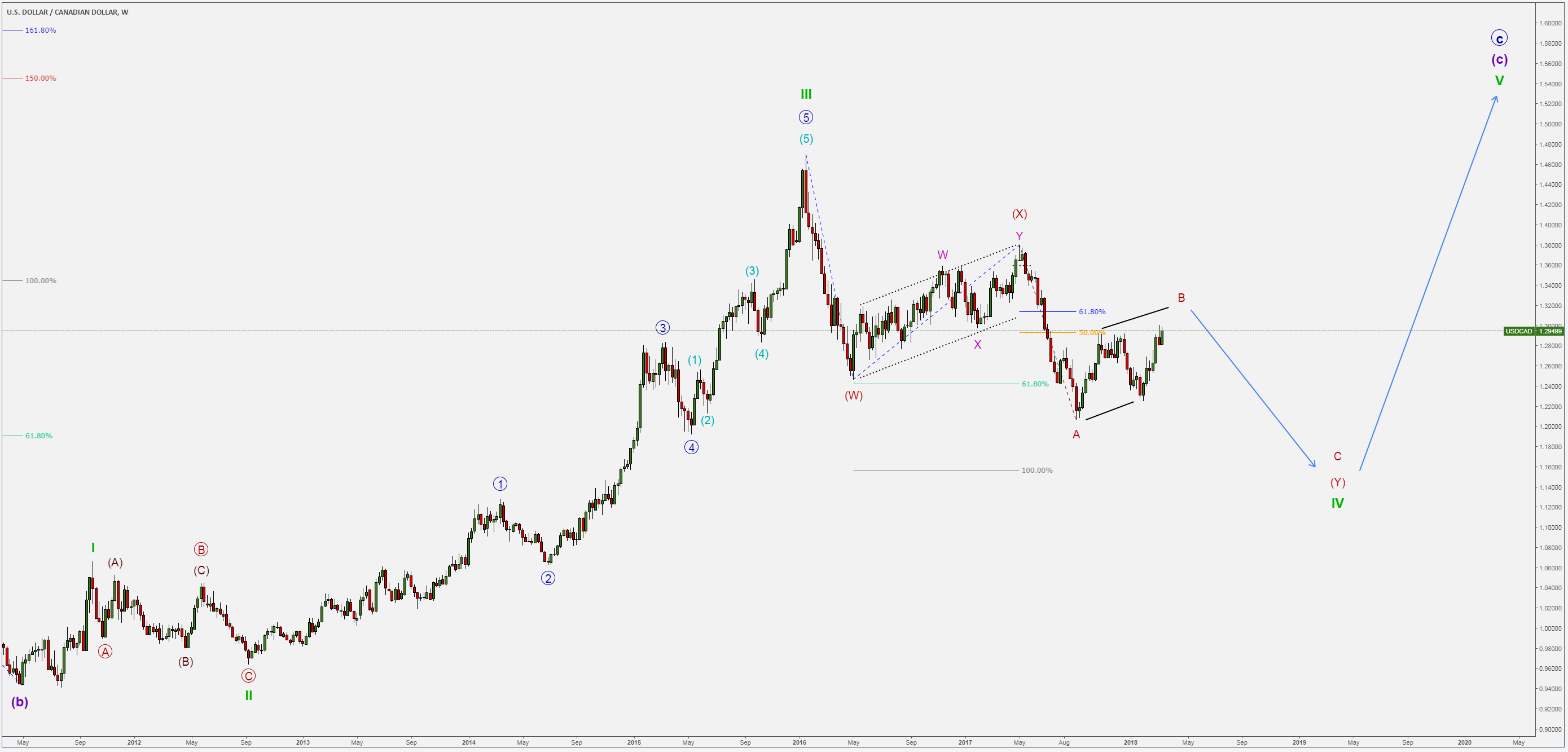 The big picture points towards the fact that USD/CAD has started a larger degree Correction labeled as Cycle Wave IV (green).