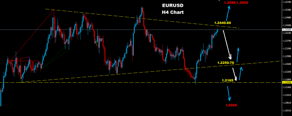 As we see over the chart, market now facing downtrend resistance at 1.2440-60 zone where as long as market holding below this line another drop wave toward 1.2250-70 zone will be expected