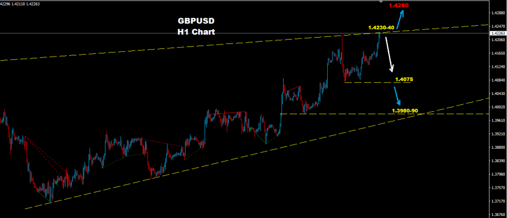 Intraday Levels showing resistance at 1.4230-40 which may provide drop correction toward 1.4100 zone