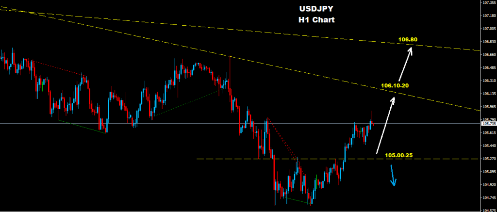 USDJPY managed to break above 105.60 is sings of more advance yet to come