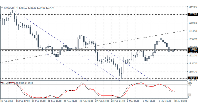 XAUUSD (1327.77): Gold prices were seen closing on a bearish note yesterday following the previous day’s strong gains. Price action closed below 1328 level which served as resistance previously. A follow through is required in order to confirm the resistance level at 1328. Alternately, if price action posts an upside bounce, we could expect to see further gains coming. Gold prices will need to breakout above the previous highs posted near the 1340 region in order to confirm the upside bias.