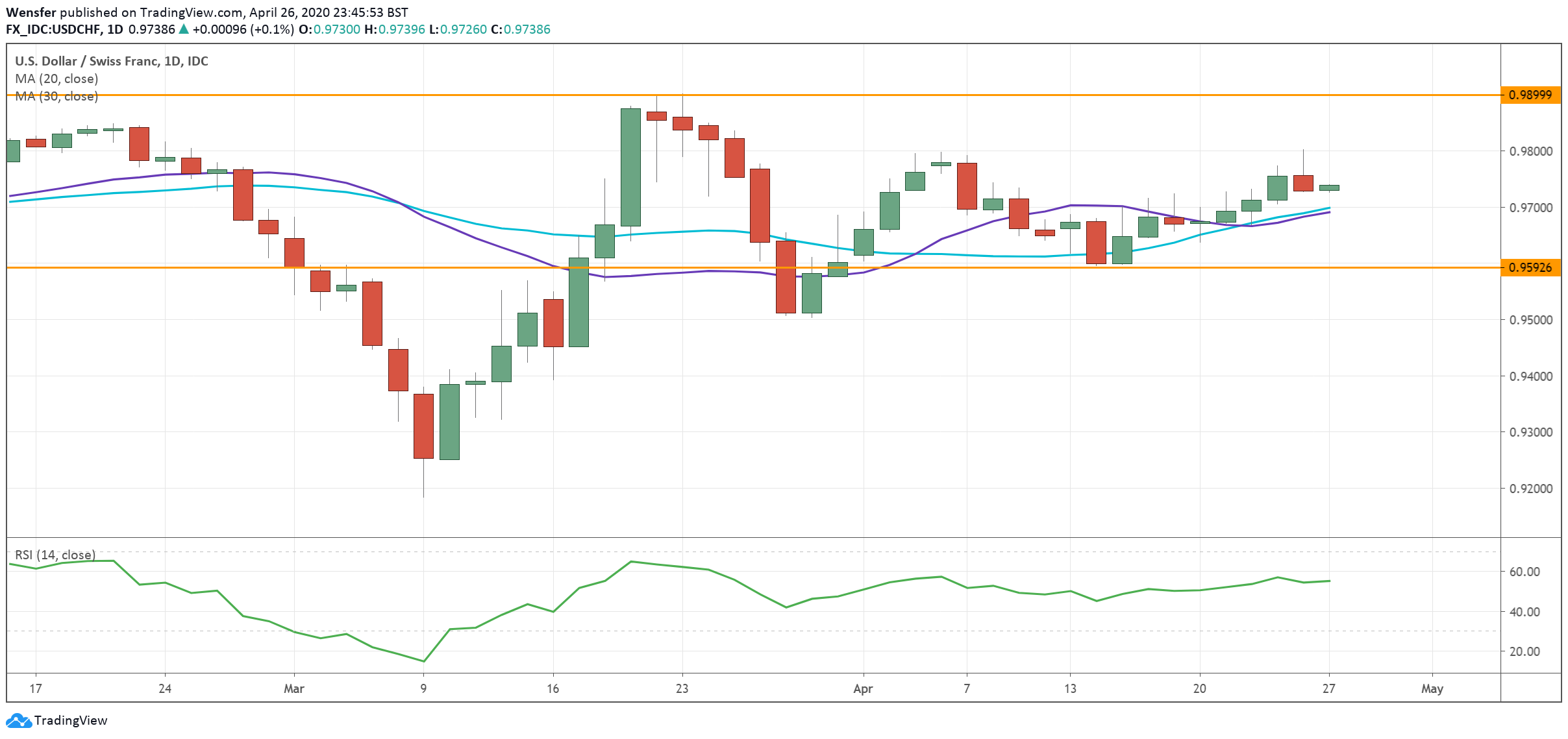 The US dollar has found strong buying interest near 0.9600. On the upside, 0.9900 is the major resistance level to lift before any extended rally.