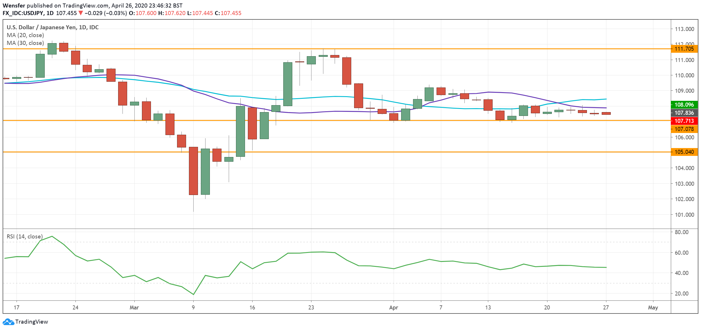 If the US dollar stays above the psychological level of 107.00, a rebound could send the pair towards 111.00.